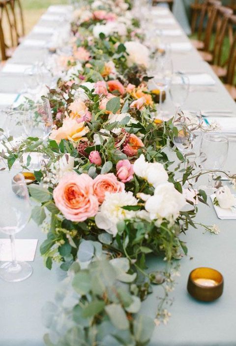 Y un lugar imprescindible. Las mesas, tanto si son jarrones o centros florales, que no interrumpan la conversación de los comensales, como flores colgantes sobre largas mesas de madera. La última moda en decoración y una tendencia que, a nosotros, particularmente nos encanta.