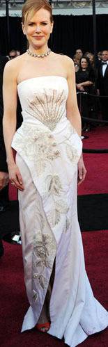 Menos acertada fue la elección de Nicole Kidman con su modelo blanco de la casa Dior. Con cortes desiguales y bordado en hilos plateados.