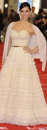 Es el caso de Elena Anaya, indiscutible protagonista por su éxito a la hora de elegir modelito. La actriz lució un diseño de Elie Saab, color verde botella, de inspiración helénica, drapeado y de escote asimétrico que combinó a la perfección con un sencillo recogido adornado por una sencilla tiara. Natasha Yarovenko también optó por un estilo similar, de Roberto Cavalli, color nude, drapeado y palabra de honor, de cuerpo encorsetado y falda con aberturas. María Valverde eligió a la diseñadora Cindy Figueroa, inspirada por la diosa del amor y la belleza, Afrodita. Para su creación utilizó sedas naturales de color nude en degradé. Las entrelazó en el cuerpo de la actriz, con diversos largos que creaban una asimetría armónica y escote corazón.