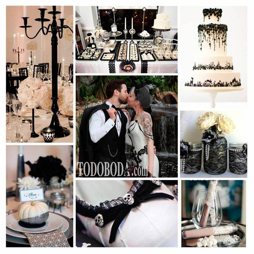 Inspiración para una boda en Halloween en blanco y negro