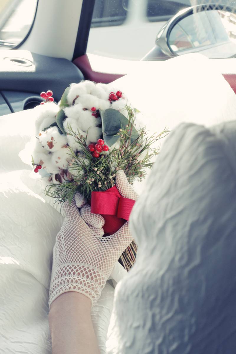 El algodón es también un elemento muy navideño que, junto al rojo y el pino puede convertirse en un ramo exquisito para una boda muy al estilo nórdico.
