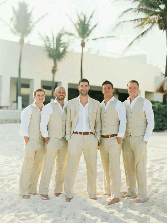 En cuanto a los complementos, la camisa blanca es obligatorio sí o sí, aunque podemos prescindir del chaleco y la corbata, sobre todo cuando se trata de un enlace menos encorsetado. En cuanto al calzado, puedes ir descalzado si te vas a casar en la arena de una preciosa playa o bien, ponerte unos preciosos zapatos marrones para dar el toque ideal a tu look.
