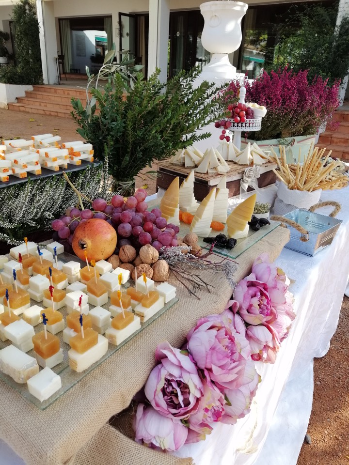 Para eventos, celebraciones sociales y bodas os ofrecemos una idea muy original para sorprender a vuestros invitados en el momento del cóctel de bienvenida o el aperitivo en el jardín del espacio que hayáis escogido, una magnífica selección de quesos en forma de buffet. Las mesas se confeccionan a medida para vosotros contando con vuestros gustos y necesidades. Además siempre os acompañaremos en el momento de la boda ofreciendo información a todo el que se interese.