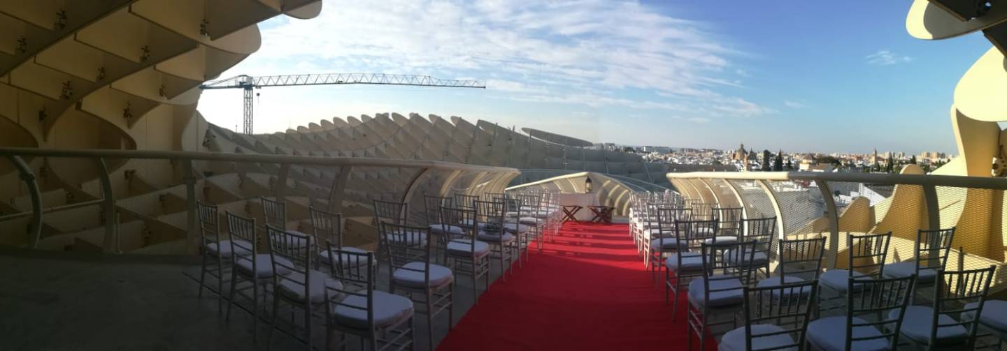 Metropol Eventos se encuentra en la planta mirador del edificio Metropol Parasol en pleno corazón de Sevilla. Edificio vanguardista que ofrece las mayores facilidades para el acceso de los invitados y, algo también muy importante, para el regreso a sus domicilios u hoteles.