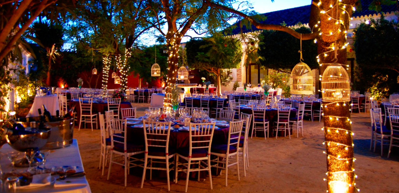 Esta hacienda, situada en el centro urbano, fue reconstruída en el año 1776 dentro de la finca del Ducado de Alba. Con sus amplios espacios y sus blancas fachadas, resulta un atractivo andaluz indudable para las parejas.