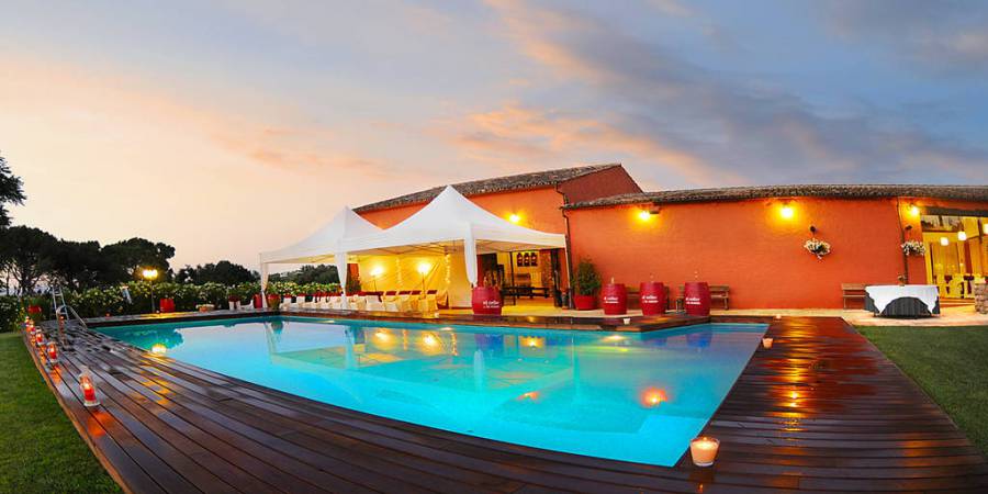 Una antigua bodega totalmente restaurada que conserva los elementos históricos originales reforzados por una decoración ambientada en el undo del vino, el cava y la música. Un estilo propio que convierte este espacio en una sala de banquetes diferente y original.Los grandes jardines de la finca y la bonita piscina rodeada de madera y velas junto a las lozas de piedra que cubren la terraza daran un encanto especial a la ceremonia.