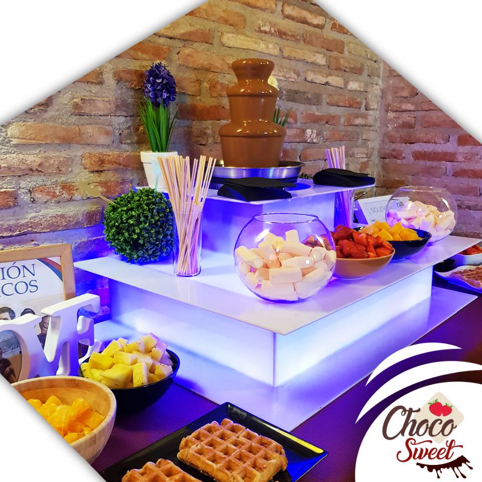 El punto fuerte de Choco Sweet son las fuentes de chocolate. Podréis elegir dónde queréis instalarla y qué la queréis acompañar. Utilizan chocolate belga de primera calidad, fabricado especialmente para Sephra por Callebaut.