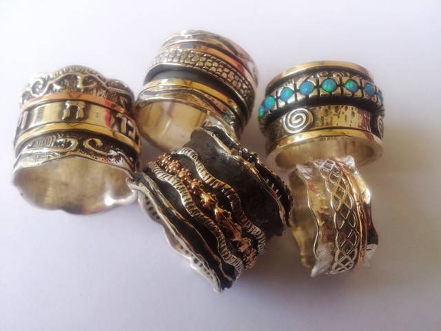 Algunos tienen un verso en hebreo o un texto personalizado, otros tienen bandas delicadas que giran sobre el anillo central.