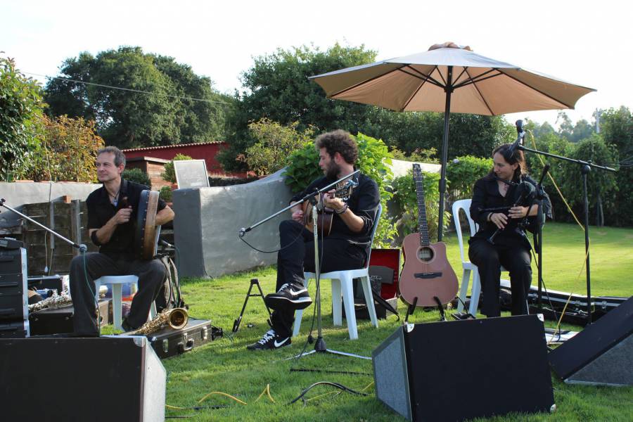 Carol Borja, con gaitas gallegas, guitarra y flautas